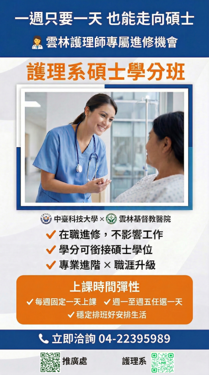 轉知中臺科技大學115學年度護理系碩士學分班招生資訊